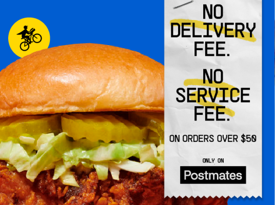 Offer is valid for 14 days once applied to account. Offer valid for up to 2 orders of $30 or more only (before taxes and fees). Max savings $30 per order. Taxes and Service Fees still apply. Only valid at participating restaurants. Not valid at grocery stores. This offer is only valid in select cities and may not be combined with other offers. Valid only in the US where Postmates is available. Exclusions may apply. Non-transferable. See app for availability. Expires on 12/31/2024. Offer applies for unlimited eligible orders $50 or more (before taxes and fees). Taxes still apply. Delivery Fee and Service Fee charges will be off-set by a corresponding promotional credit equal to the Delivery Fee and Service Fee automatically applied at checkout. Exclusions apply. Offer may not automatically apply if a more lucrative offer is available for use. Limited to delivery only. Only valid at participating merchants. Customers with multiple Postmates accounts may be excluded from this promotion. Offer is not shareable or transferable. Offer cannot be redeemed for cash or like exchanges. Postmates reserves the right to modify or terminate this offer at any time without notice. Offer cannot be combined with other offers. Only valid in select markets. See Postmates app for availability. |